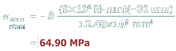 Therefore, to determine the bending stresses in the material that was transformed [steel bar (2) in this instance], the flexure formula must be multiplied by the modular ratio n: