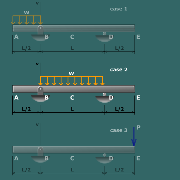 Case 2 consists of the uniformly distributed load w acting on simply supported span BD.