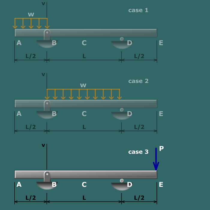 Case 3 consists of the concentrated load P acting on overhang DE.