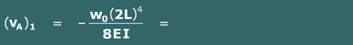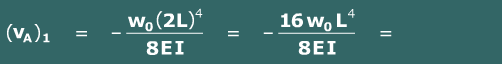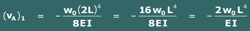 For the case 1 beam, w = w0 and the beam length is actually 2L. Making these substitutions leads to the following expression for the case 1 beam deflection at A: