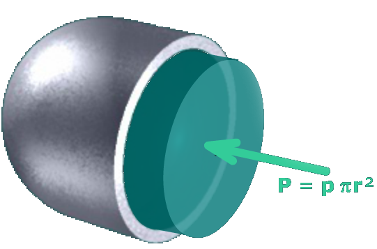 The resultant force due to the internal pressure is the product of the pressure p and the internal cross-sectional area of the cylinder: