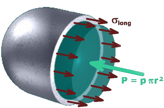 Therefore, the longitudinal stress created in the wall of the cylindrical pressure vessel can be expressed as: