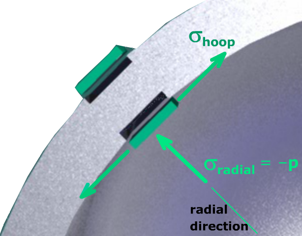 There is pressure in the radial direction on the inner surface of the cylinder. The pressure creates a normal stress, and consequently, the inner surface is in a state of triaxial stress.