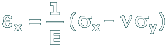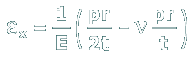 In the x direction (i.e., in the longitudinal direction), the normal strain is given by:
